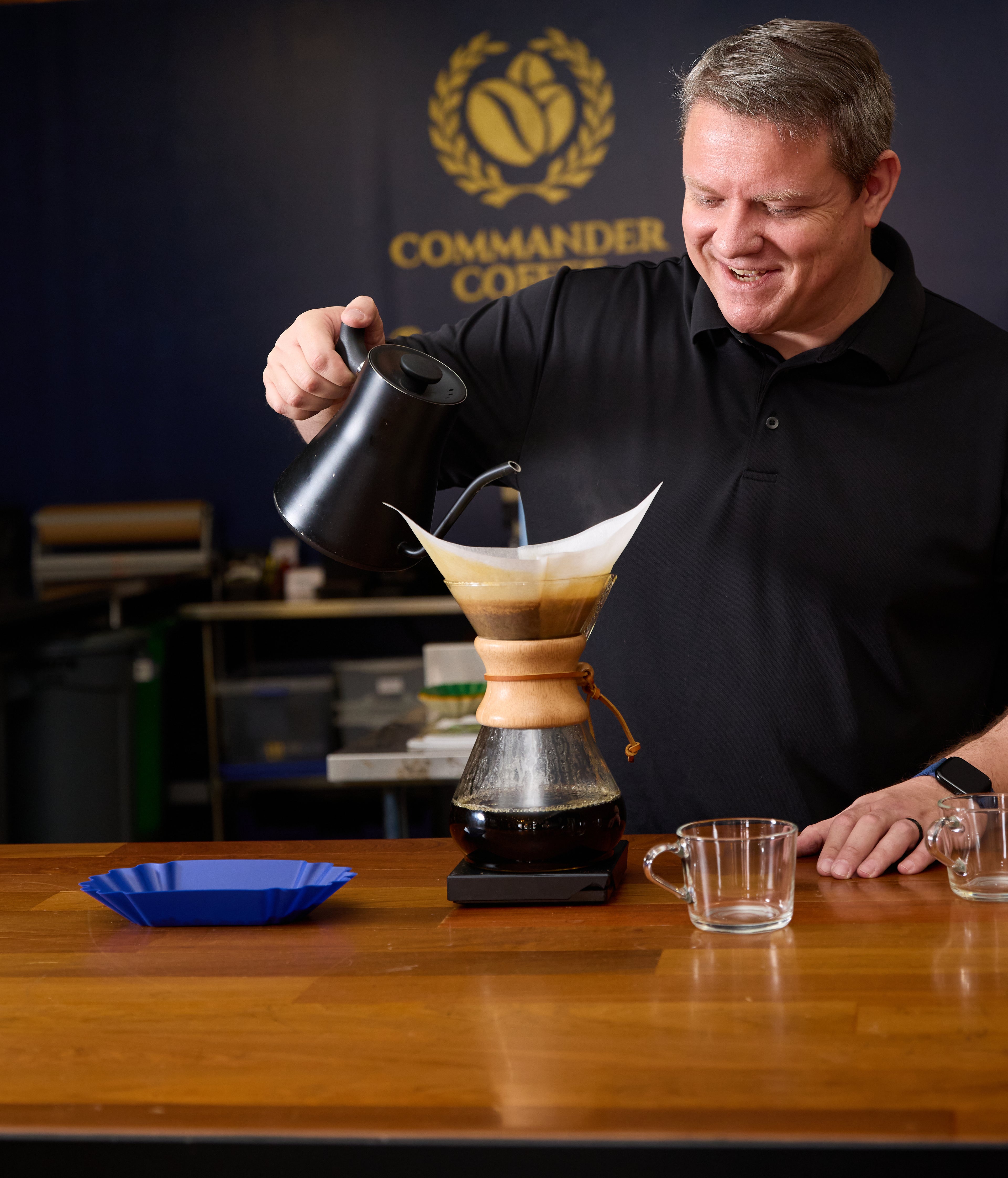 Randy is a retired Naval Officer who spent much of his career at sea. During his time away from home, he always enjoyed a good strong cup of coffee and developed a passion for finding unique and flavorful coffees. During his years in the Navy, Randy had the opportunity to visit several countries and meet amazing people who introduced him to the various qualities of coffee. Coffee became more than just a cup of morning fuel, evolved into a passion for the craft of specialty coffee. Community and quality are the focal point of Commander Coffee with its inviting cafes and community involvement.